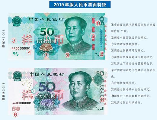 今年4月22日,中國人民銀行發(fā)布公告稱,將于2019年8月30日起發(fā)行2019年版第五套人民幣50元、20元、10元、1元紙幣和1元、5角、1角硬幣。