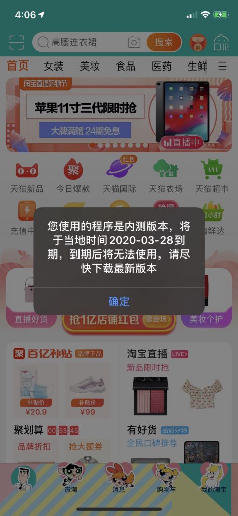 3月25日,手機(jī)淘寶iOS版本出現(xiàn)BUG,iPhone手機(jī)用戶打開(kāi)淘寶APP后,會(huì)出現(xiàn)到期提示彈窗。彈窗顯示:您使用的程序是內(nèi)測(cè)版本,將于當(dāng)?shù)貢r(shí)間2020-03-28到期,到期后將無(wú)法使用,請(qǐng)盡快下載最新版本。管道泵