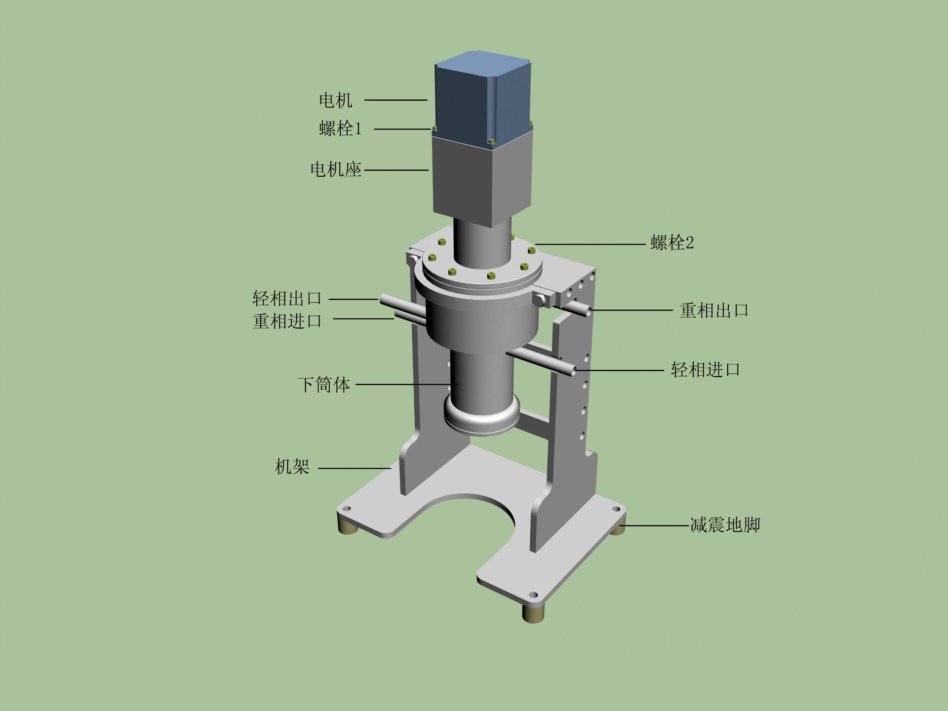 離心機(jī)之所以能夠?qū)崿F(xiàn)兩相液體的分離,是因?yàn)槁菪龘醢逶陔x心力的作用下能夠?qū)崿F(xiàn)歧管的平衡。 忽略溶液混合區(qū)和沉降過(guò)渡區(qū)的話,可以認(rèn)為螺旋擋板的左側(cè)是分層兩相液體,上層是醋酸丁酯,下層是水溶液,螺旋擋板的右側(cè)是水溶液。 由于同一離心力,兩側(cè)的材料因密度而產(chǎn)生液位差,實(shí)現(xiàn)兩液相的分開(kāi)排出。