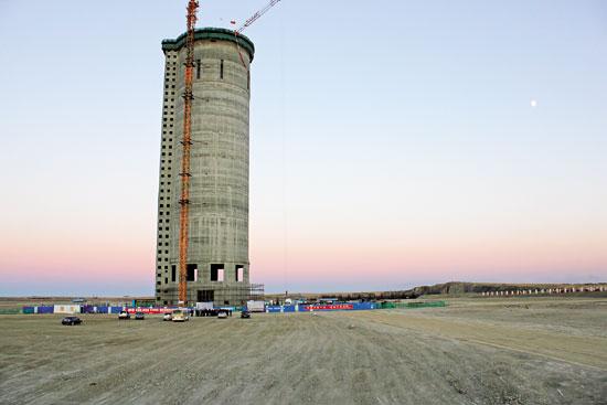 由于尿素造粒塔造粒工藝需求,其塔頂高度普遍 較高,部分塔頂除塵裝置排放口距地面超過100m,且由于塔形結(jié)構(gòu),其頂部平臺空間小,檢修不便、風 力載荷大。造粒工藝冷卻風量較大,其每1萬t的年產(chǎn)能,對應(yīng)冷卻煙氣風量為1.5萬~ 2.0萬m3/h。一 座40萬t/a規(guī)模的尿素造粒塔高溫天氣下冷卻風量達 到80萬m3/h,較端高溫高濕情況下其冷卻風量還可能更高。