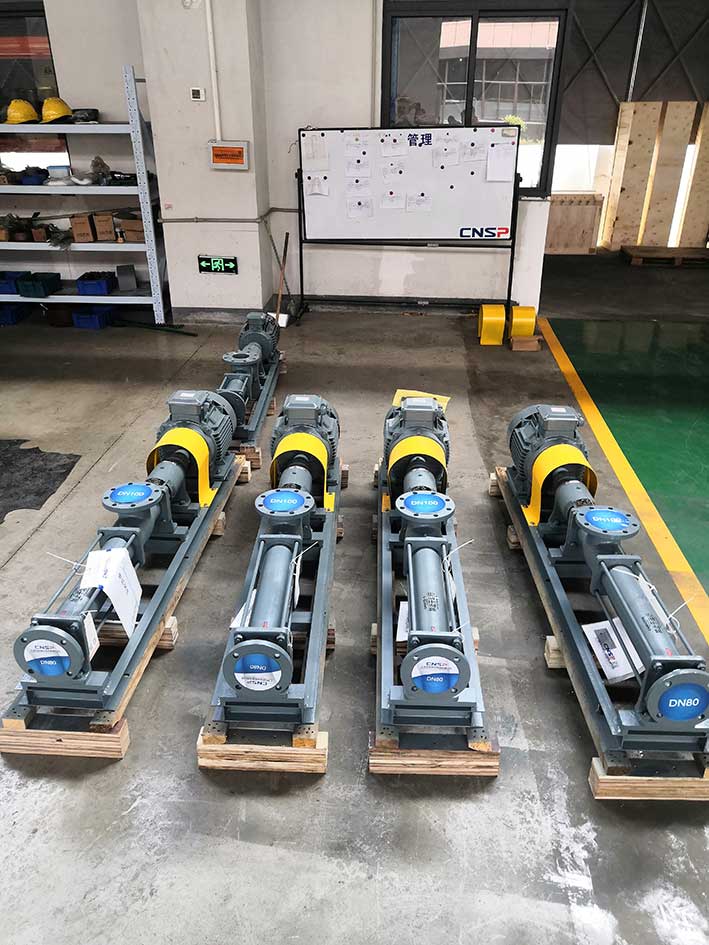 河南某工程技術(shù)有限公司是鄭州市高新區(qū)企業(yè),專業(yè)從事礦山機(jī)械和工業(yè)選礦設(shè)備研發(fā)與制造加工的企業(yè),近日已工程需要在我廠采購(gòu)一批單螺桿泵,型號(hào)為G50-2,泵為不銹鋼材質(zhì),用于輸送污泥。部分參數(shù)供選型參考:流量20m3/h壓力1.2 MPa功率7.5kw ?進(jìn)口100mm?出口80mm,生產(chǎn)檢驗(yàn)完工已交付客戶使用。