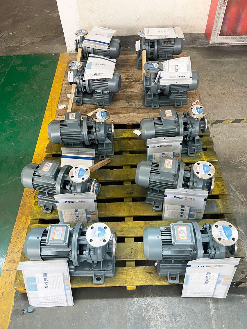 蘇州某建筑工程有限公司是一家主要承接境內(nèi)外房屋建造總承包施工、市政公用工程、水利水電工程的單位,因設備配套需要在我廠采購一批臥式管道泵,型號為ISW25-125,泵為304不銹鋼材質(zhì),用于輸送清水。部分參數(shù)供選型參考:流量4m3/h 揚程20m 電機功率0.75kW ,生產(chǎn)檢驗完工待裝箱發(fā)貨。