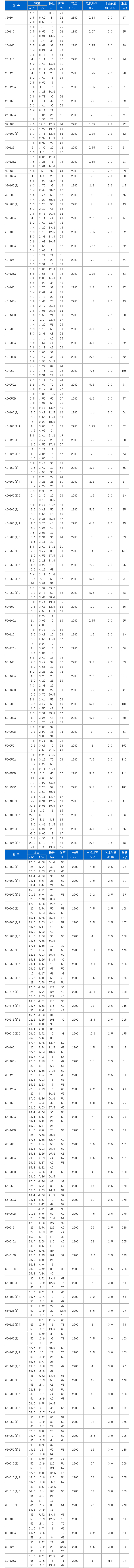 管道泵因利用離心力實現(xiàn)介質輸運,有著優(yōu)越的流體增壓能力,故而被廣泛用于工業(yè)和城市排水,對于設備使用者而言,了解管道增壓泵選型表可以更準確的為自己選擇合適的設備,對此,可參閱由中成泵業(yè)整理的以下內容。