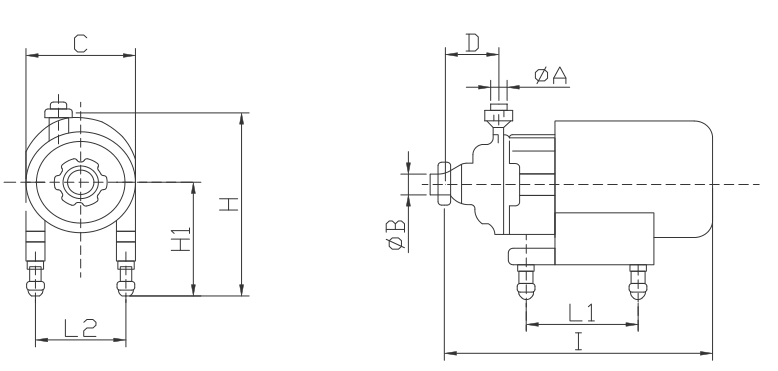 | 型號 | A | B | L | LI | L2 | H | HI | C | D |