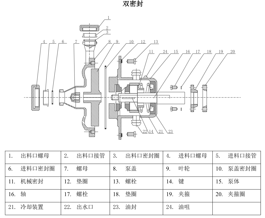 | 八 | 軸封漏液 | 1.機(jī)械密封件磨損 | 1.更換機(jī)械密封件 |