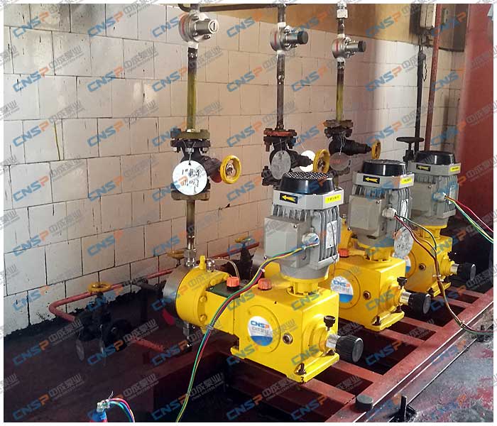 近日,中成泵業(yè)技術工程師赴吉林白城某熱電公司現(xiàn)場指導調試液壓隔膜式計量泵,這批計量泵用于輸送氨水,選擇了304不銹鋼材質泵頭,使用流量為60L/H,排出壓力為1.6MPa,選擇的型號為JYX-63/1.6。