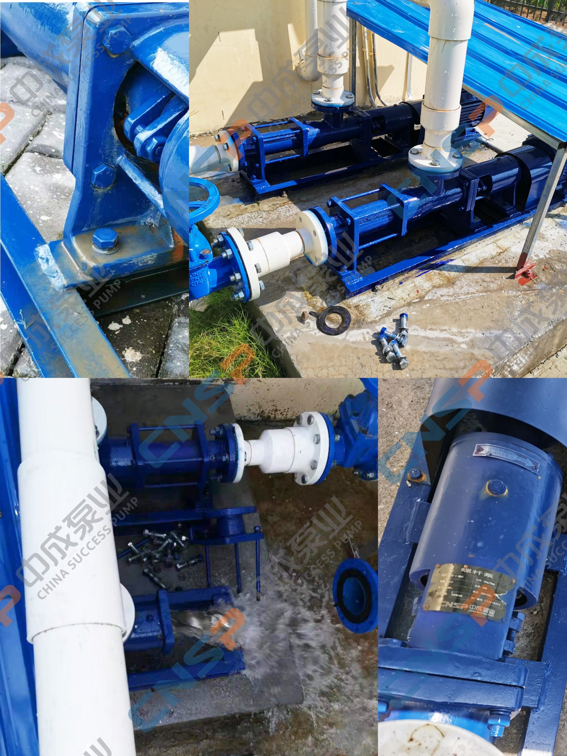 廣東肇慶市某大型污水處理廠去年在我廠采購一批單螺桿泵,用于輸送污水。2021年7月客戶向銷售反映螺桿泵滴漏,上海中成泵業(yè)全國售后巡回人員楊工接到售后申請后,趕赴現場6個使用污水廠,進行察看并幫客戶指導使用問題。